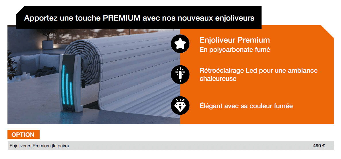 côté moteur + Moteur 24 V avec fin de course mécanique + Coffret 24 V électrique avec contact sec pour électrolyseur au sel + Couverture en
